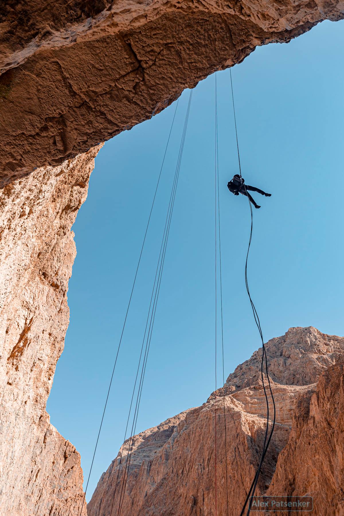 Разумеется, кроме гигантского 120-метрового спуска в Хацацоне есть еще несколько. Всего нас ждут 5 отвесов, 4 из которых выше 10-этажного дома! Короче, ущелье для любителей оторваться по полной.
