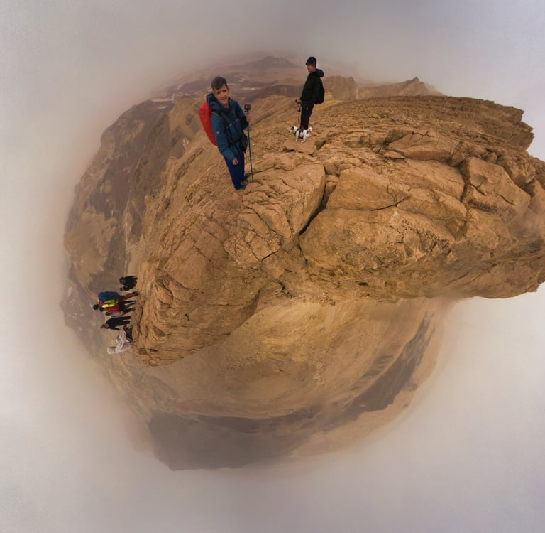 Подорвавшись в 4 утра, мы к 6:30 уже были на точке встречи. В 7:00 вышли на трек с окраин Мицпе‑Рамон — бодрые, свежие, слегка сомневающиеся в своих жизненных решениях.